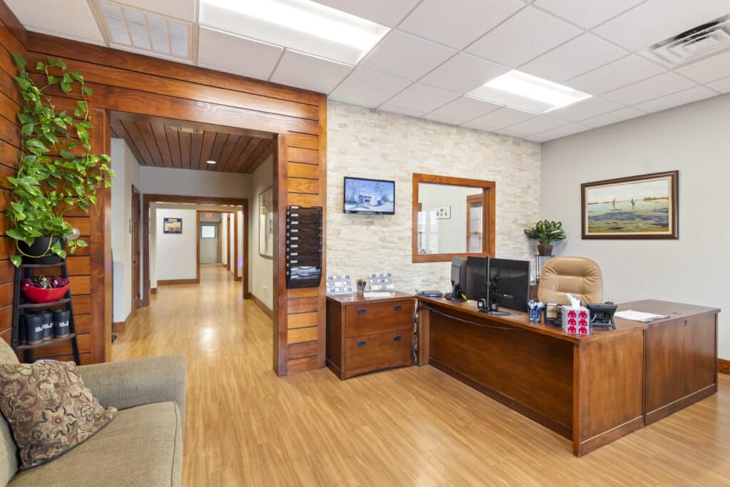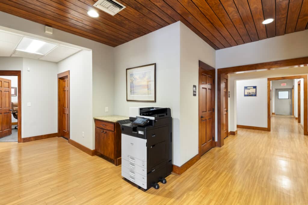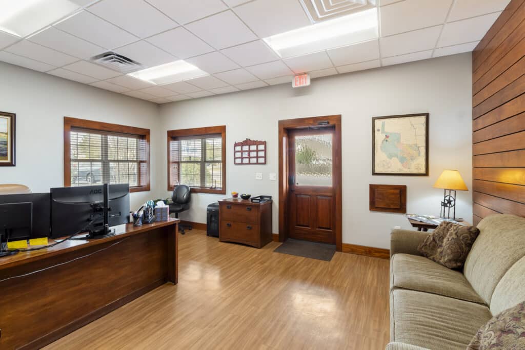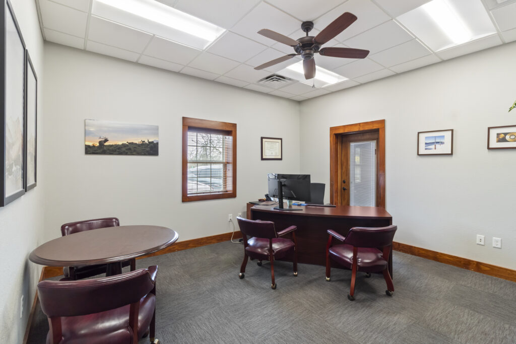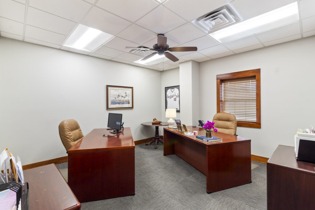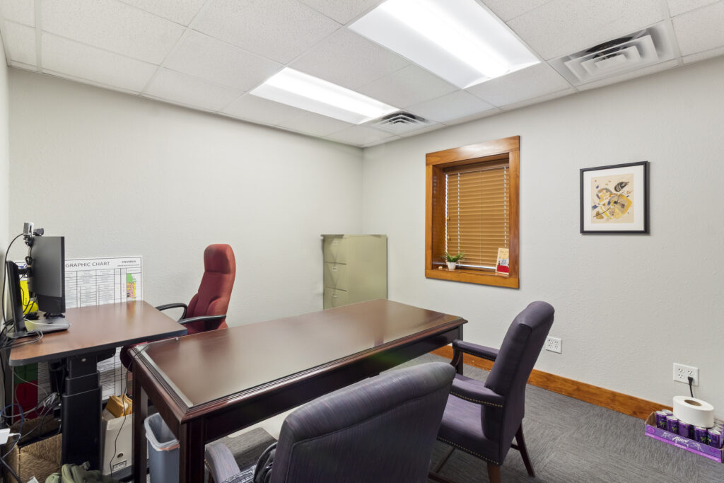 Reception, 8 offices, conference room, two restrooms, and lots of storage.